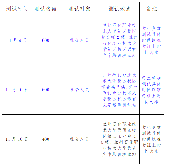 根据兰州石化职业技术大学语言文字培训测试站2024年度工作计划,下半年社会人员测试工作将于11月9日正式开始。为使测试工作的报名、现场测试、成绩查询及证书领取等工作环节科学、规范,现就具体事宜通知如下。